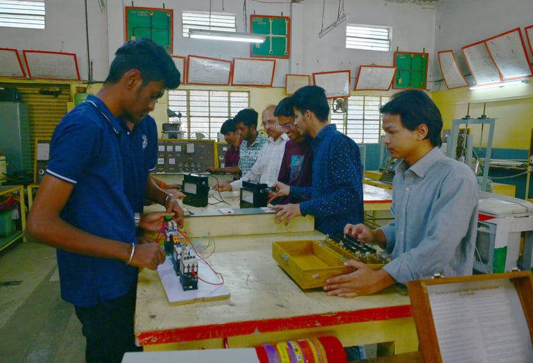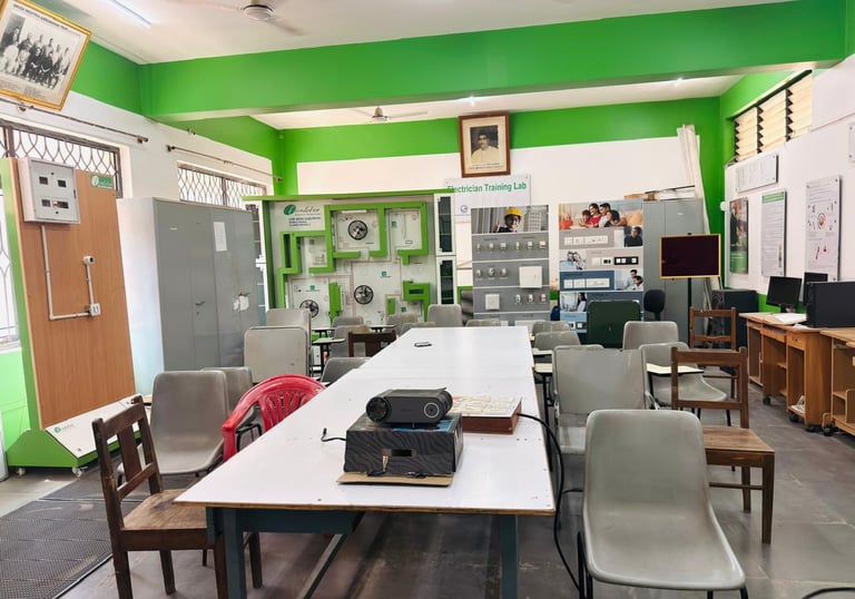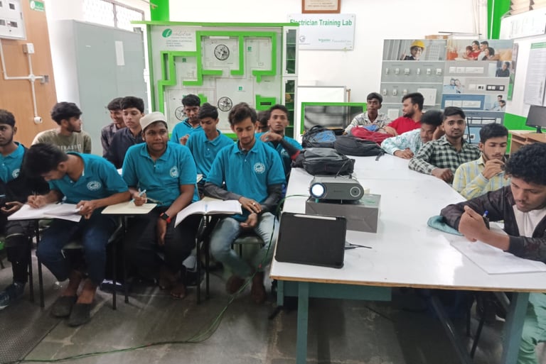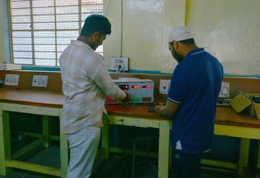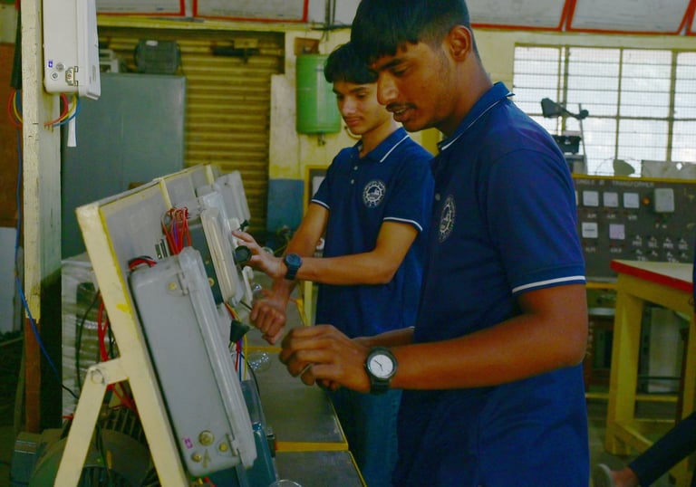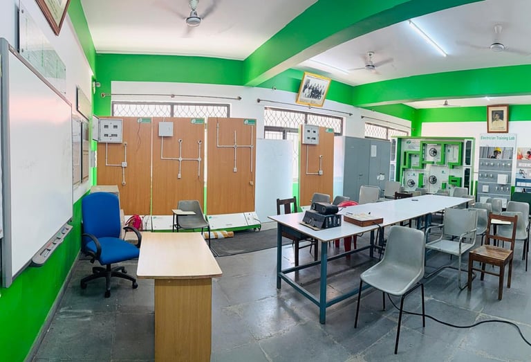 The training program emphasizes extensive hands-on practical work in well-equipped workshops. ITI trainees are trained in domestic and industrial wiring, installation of electrical equipment, testing and maintenance of motors, generators, control panels, and protection devices. They also gain experience in fault finding, use of electrical measuring instruments, earthing systems, and preventive maintenance practices. This practical exposure helps trainees develop technical accuracy, safety awareness, and confidence to handle real-time electrical systems and troubleshoot problems effectively.