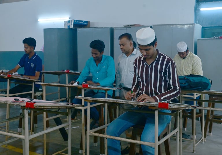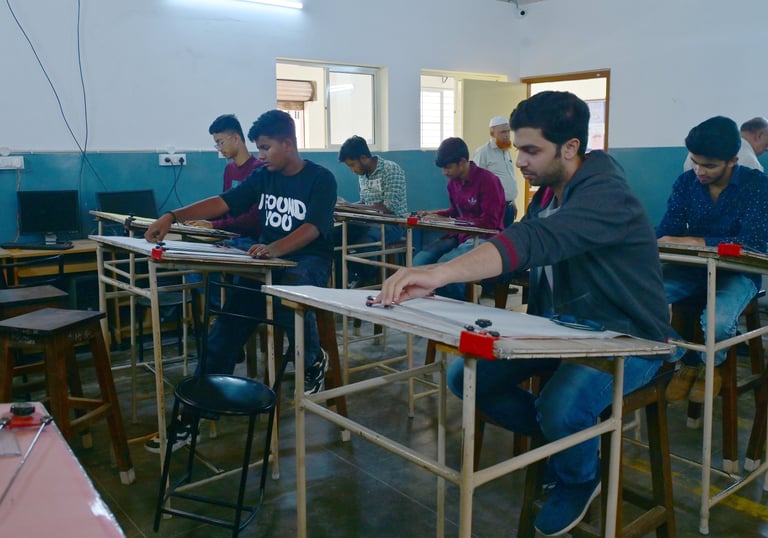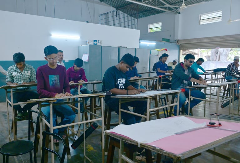 The training program integrates traditional drafting skills with modern CAD tools to ensure industry relevance. ITI trainees are trained in manual drafting as well as computer-aided drafting using CAD software to create 2D drawings and basic 3D models of machine parts, assemblies, and layouts. They gain practical experience in dimensioning, tolerancing, sectioning, and detailing of components used in manufacturing and fabrication. This hands-on exposure helps trainees develop precision, design visualization skills, and the ability to convert concepts into accurate technical drawings.