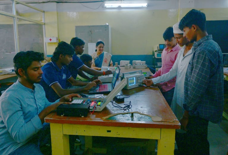 The training program places major focus on practical, hands-on learning through laboratory and workshop sessions. ITI trainees are trained in assembling, testing, installing, servicing, and repairing a wide range of electronic devices and systems such as power supplies, inverters, UPS systems, consumer electronics, industrial control circuits, and communication equipment. They gain experience in soldering, desoldering, fault diagnosis, use of measuring instruments, and troubleshooting electronic circuits. This practical exposure helps trainees develop accuracy, problem-solving skills, and confidence required for real-world electronic maintenance and service work.